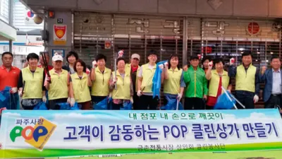 파주시, POP 클린상가 만들기 추진 가속 - 금촌전통시장! 고객사랑, 지역사랑 실천 - 파주시 POP 클린상가 만들기 운동에 속도가 붙었다. 지난 5월 24일 POP 클린상가 만들기 설명회 이후 6월 14일 광탄전통시장 상인회원들의 첫 활동에 이어 20일 금...
