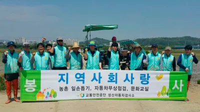 교통안전공단 성산검사소 파주 조리읍 모내기 농촌봉사 교통안전공단 성산검사소는 지난 14일 1촌1사 자매결연 마을인 파주시 조리읍 능안리 마을을 찾아 모내기 농촌봉사 활동을 했다. 이날 직원들은 못자리 논에서 잘 자란 모판 5,000장을 10곳 논에 옮기는 작업...