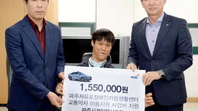 파주시 개인택시조합, 장애인단체에 사업비 지원 파주시 개인택시조합이 교통약자 이동지원서비스 사업에 155만원을 지원했다. 교통약자 이동지원서비스 사업은 보행이 어려운 중증장애인 및 65세 이상 고령자 등 대중교통 이용에 어려움을 겪는 사람들을 위해 특수 제...