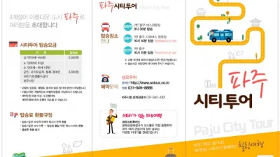 →위 이미지를 클릭하시면 더 크게 볼 수 있습니다. 시티투어 버스 타고 파주 구석구석 즐겨요 - 5월 5일 출판도시에서 개통식 가져, 6일부터 시티투어 본격 운영 - 파주시는 5월 6일부터 파주시 유명 관광지를 테마별로 연결하는 파주 시티 투어를 본격 운영한다고 밝...