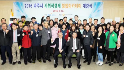 파주시, ‘사회적경제 창업 아카데미’ 운영 파주시(시장 이재홍)와 (사)파주시사회적경제협회(회장 유명곤)는 우수 사회적경제기업 창업과 지속가능한 성장을 위한 사회적경제 창업 아카데미를 3월 22일부터 6월 30일까지 15주 동안 파주고용복지플러스센터에서 운영한...