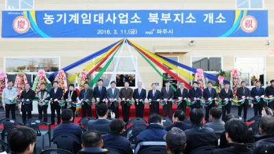 파주시농기계임대사업소 북부지소 개소 - 북부권 농업인 편의 증대 및 경영비절감 도모- ○ 파주시(시장 이재홍)는 북부권 농업인의 경영비 부담을 줄이고 영농시간 단축을 위해 농기계임대사업소 북부지소(파평면 청송로 503-5)를 설립하고 3월 11일 오후 4시에 개...