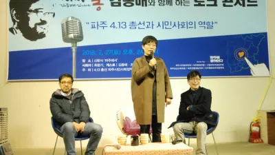 파주 시민이 ‘파주를 결정한다’ 파주시민정책네트워크 주최 4.13총선 토론회 개최 ▲김종배, 최광기, 조형근씨가 4.13총선에 대해 이야기를 나누고 있다. 2월 27일 신문사 <파주에서> 사옥에서 '4.13총선 파주시민사회정책네트워크'(이하 정책...