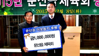 파주시 문산읍 체육회 사랑나눔 후원금 100만원 기탁 파주시 문산읍 체육회는 8일 체육회 송년의 밤을 통해 관내 저소득 가구를 위한 불우이웃돕기 성금 100만원을 문산읍에 전달했다. 문산읍 체육회는 매년 이웃돕기 성금 기탁과 주민화합을 위한 체육대회를 개최하고 있다...
