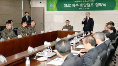 -“군인도 가장 영예로운 파주시민이다"-지자체 최초 민관군 협력 프로젝트「 DMZ 파주 희망캠프 」 ‘군인도 파주시민이며 그 중에서도 가장 영예로운 시민이다.’ 파주시 군인은 휴전선과 인접한 접경지역 특성상 43만 인구의 5%, 5개 사단 1개 여단 약 2만3천여 ...