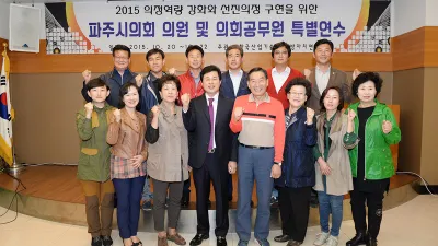 파주시의회 "2015 의정역량 강화와 선진의정 구현을 위한 의원 특별연수" 실시 * 파주시의회(의장 박재진)는 10월 20일부터 2박3일 일정으로 한국산업기술연구원 지방자치연구소에 의뢰한 2015 하반기 지방의회 의정 연수를 실시했다. * 박재진 의장은 “...