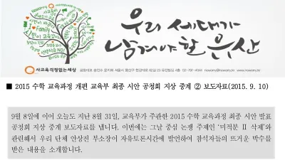 2015-09-10 12:44:00[지상중계①] 수학 공청회 논쟁 : 수학 전쟁(Math War)이 뭐라고요?(녹취 및 동영상)