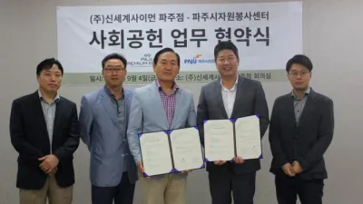 자원봉사 확산 및 사회공헌 활동 업무협약 체결파주시자원봉사센터 - (주)신세계사이먼 파주 프리미엄 아울렛 파주시자원봉사센터(이사장 이재홍)는 최근 (주)신세계사이먼 파주 프리미엄 아울렛(점장 김희석)과 자원봉사 확산 및 사회공헌 활동을 위한 업무협약을 체결했다. 협...