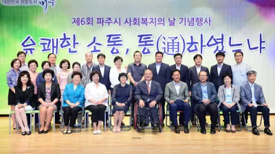 2015년 제6회 파주시 사회복지의날 행사 개최- 유쾌한 소통 통(通)하였느냐, 사회복지인들의 화합의 장 마련 - 파주시사회복지협의회(회장 김광식)는 9월 1일(화) 시민회관 소공연장에서 ‘유쾌한 소통, 통(通)하였느냐’ 란 슬로건으로 제6회 파주시사회복지의 날 ...