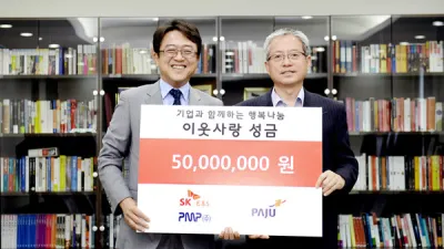 - 기업의 사회적 책임, “ 노블리스 오블리제 ” 실천 -PMP(주) 파주시에 이웃사랑 성금 기탁 민족의 대명절 추석을 앞두고, 8월 31일(월) 장문천연가스발전소 시행사인 PMP(주) 문상학 부사장은 파주시청을 방문해 이웃사랑 성금 5천만원을 기탁하는 전달식을 ...