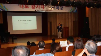 파주시교육문화회관, 8월 특강 “부모는 행복 안내자” 강좌 운영- 『나도 강사다!』 프로그램을 통한 전문강사 도전기회 제공 - 지난 17일 오전 10시 교육문화회관 대강당에서 시민 200여명이 참석한 가운데 ‘부모는 행복 안내자’ 라는 주제로 이용근 행복장학회 이사...