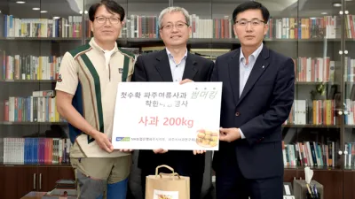 파주 첫수확 여름사과“썸머킹”사랑나눔 기부행사- 국내육성 여름사과“썸머킹”상큼한 사랑을 나누다 - 파주시사과연구회(회장 성기율)와 NH농협파주시지부(지부장 이석용)의 파주 첫수확 여름사과 “썸머킹” 사랑나눔 기부행사가 12일 있었다. 썸머킹은 국내육성 사과품종으로...