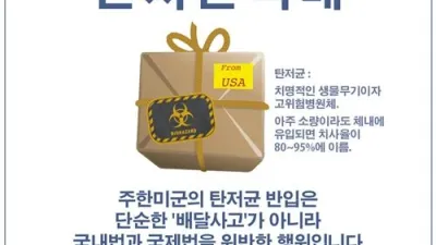 “주한미군 탄저균 실험 전모 공개하라”참여연대 등 66개 단체, 국민생명 위협하는 소파 개정 촉구 보건의료단체연합(이하 보건연합)는 지난 4일 주한미군 오산기지 탄저균 실험의 전모공개와 생물학적 무기 실험실의 영구 폐쇄를 촉구했다고 '약사공론'(대한약사회 기관지)는 ...