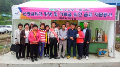 파주 적성면, 28사단 신병교육대 방문객에게 무료 음료 제공- 지역경제 활성화와 시 이미지 향상에 기여 - 파주시 적성면(면장 김건배)은 5월 19일부터 육군 제28사단 신병교육대 입소 가족과 장병을 위해 무료로 커피와 녹차를 제공하는 봉사활동을 시작했다. 음료 무...