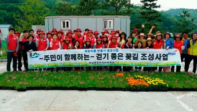 파주시 적성면, 두지리 체육공원 제방둑길 꽃길로 조성- 가족과 함께 걷고 싶은 산책로 만들어 - 파주시 적성면은 지난 8일, 희망공원 조성을 위해 주민이 함께하는 꽃길 가꾸기 행사를 개최했다. 적성면 관문인 두지리 체육공원으로 이어지는 약 1km 길이의 제방 산책로...