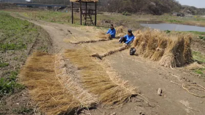 파평면 실버경찰대...... 율곡습지공원 조성을 위한 구슬땀- 율곡습지공원 방문객 맞이 전통 옛것 구현 - 파주시 파평면 실버경찰대는 5월 율곡습지공원을 방문할 관광객을 위해 실버대원 36명이 참여한 가운데 유채꽃 주변의 소리쟁이 제초작업, 장승제작, 초가집 이엉작업...