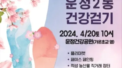 파주시 운정2동, 4월 20일 ‘제2회 새봄맞이 운정2동 건강걷기’개최 - 총 5㎞ 코스…사전 신청 없이 현장에서 누구나 참여 가능 파주시 운정2동은 4월 20일 10시 운정건강공원(가온초교 옆)에...