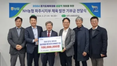 2024 경기도체육대회 성공 위해, 엔에이치(NH)농협 파주시지부, 경기도체육대회 기부금 전달 파주시는 ‘제14회 경기도장애인체육대회 및 제70회 경기도체육대회’의 성공적인 개최를 위해 엔...