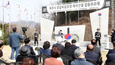 파주시, 항일독립항쟁 애국선열 합동추모제 거행 - 105년전 파주시 3.1운동의 숭고한 정신 기려 파주시는 광복회 파주시지회와 함께 27일 광탄면 발랑리 소재 파주독립광탄공원에서 ‘파주시 항일독립항쟁 애국선열...