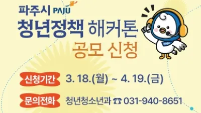 ‘청년이 직접 만드는 청년정책’…파주시, 청년정책 공모전 개최 - 개인 또는 팀(2~5인) 참여, 총 시상금 260만 원 지급 파주시는 청년들이 직접 청년정책을 제안할 수 있는 ‘청년정책...