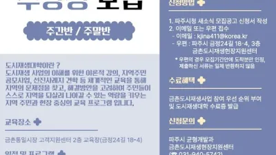 2024-03-19 02:20:43파주시, 금촌도시재생대학(기초과정) 수강생 40명 모집