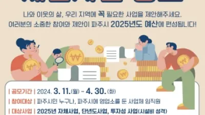 2024-03-13 05:43:35파주시 주민참여예산 제안사업 공모…4월 30일까지 신청