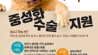 2024-03-04 02:02:35파주시, 실외사육견 중성화수술비 최대 40만 원 지원