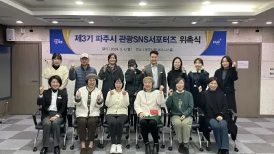 시민이 이끄는 파주관광…제3기 누리소통망(SNS) 서포터즈 활동 돌입 - 20대에서 70대까지 총 15명 선발, 2년간 파주 관광 홍보대사 역할 파주시는 지난 4일, ‘제3기 파주시 관광누리소통망(SNS) 서포터즈 위촉식...