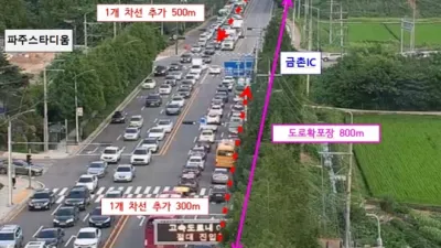 파주 서울∼문산 고속도로 ‘금촌 나들목(IC) 진입로’ 확장…12월 개통 목표 - 25억 원 투입해 1개 차로 확장…상습 정체 해소 기대 파주시는 출퇴근 대 상습 정체를 겪고 있...