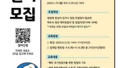 파주시,‘신중년-엠지(MZ) 취창업멘토링’청년 참여자 20명 모집 - 창업 상담이 필요한 파주시 청년 대상, 3월 20일까지 신청 파주시가 2월 19일부터 3월 20일까지 ‘신중년-엠지(...