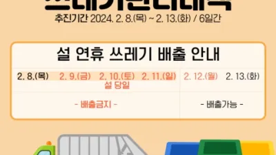 파주시, 설맞이 촘촘한 대응체계 마련 - 생활물가대책반·이웃돌봄반 등 15개 상황반 구성 파주시가 설 연휴 기간인 2월 9일부터 12일까지 ‘2024년 설 연휴 종합대책’을...
