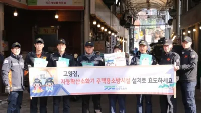 파주소방서, ‘“설 명절 안전을 선물하세요!” 파주소방서(서장 이상태)는 8일 설 명절을 앞두고 광탄 5일장에서 주택용 소방시설(소화기, 주택 화재경보기 등) 선물하기 캠페인을 실시했다고 밝혔다. 이...