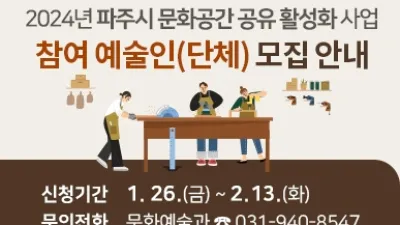 2024-01-31 01:59:32파주시, 문화 예술인에 대관료, 프로그램 운영비 등 지원