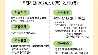 파주시, 2024년 청년 취업성공 프로그램 참여자 모집