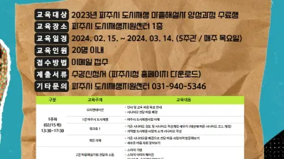 2024-01-23 02:35:04파주시, 도시재생 마을해설사 양성과정 보수교육 참가자 20명 이내 모집