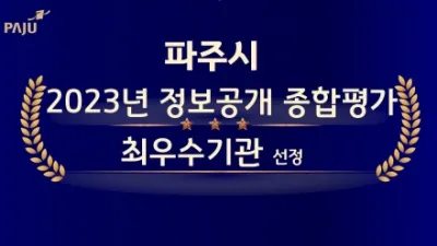 파주시, 정보공개 종합평가‘최우수’기관 선정 - 사전정보 공표 등록 건수 등 4개 지표서 만점 기록 파주시는 행정안전부에서 실시한 2023년 정보공개 종합평가에서 ‘최우수’ 기관으로 선정됐...