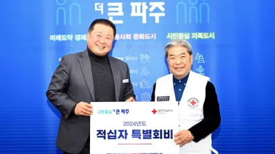파주시, 2024년 적십자 특별회비 전달 파주시는 19일 대한적십자사 경기도지사에 ‘2024년도 적십자 특별회비’ 100만 원을 전달하며 지역사회에 아름다운 선행을 실천했다. 이날 전달식에는 김경일...