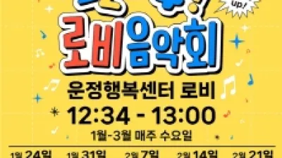 매주 수요일 파주 운정행복센터에서 찾아가는 ‘로비음악회’개최 - 3월까지 가요와 클래식 등 다양한 공연 선보인다 파주시는 오는 24일부터 3월 말까지 매주 수요일 운정행복센터 1층 로비에서 시민들이 친근하고 편...