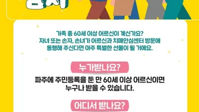 “치매검사는 최고의 효도선물입니다” - 파주시치매안심센터 ‘찾아가는 무료 치매검사’ 실시 파주시치매안심센터는 오는 22일부터 거동이 불편하거나 교통 등의 접근성이 떨어지는 사각...