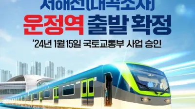 2024-01-16 00:24:34서해선(대곡-소사) 파주 연장 확정! -15일 국토교통부 사업 승인, 파주시 교통 획기적 발전 기대