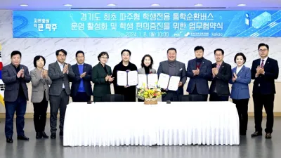 파주시, 경기도파주교육지원청 및 카카오와 통학순환버스 업무협약 체결 - 통학환경 개선, 획기적 변화 위한 첫걸음…3월 운행 목표         파주시가 지난 8일, 경기도파주교육지원청, 주식회사 카카오와 학생들의 안전하고...