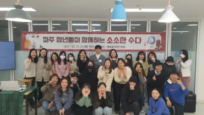 파주시, 또래 청년들과 함께하는 ‘소소한 수다’…공감 자리 마련       파주시는 21일 청년공간(금릉역로 84)에서 청년들을 대상으로 ‘또래 청년들과 함께하는 소소한 수다’ 자리를 마...
