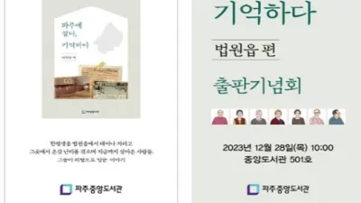 파주중앙도서관, 「파주에 살다, 기억하다 -법원읍 편-」출판기념회 개최         파주중앙도서관은 12월 28일 법원읍 기록사업의 결과물을 엮은 「파주에 살다, 기억하다 -법원읍 편-」 기록집 발간을 위한 출판기념회를...