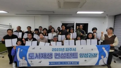 파주시, ‘2023년 도시재생 컨설턴트 양성과정’ 수료생 22명 배출 - 2024년 파주시 희망 일자리와 연계 예정         파주시는 지난 14일 ‘2023년 도시재생컨설턴트 양성과정’...