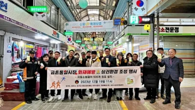 파주금촌통일시장 화재예방 상권환경 조성 행사 열려 - 500개 점포에 소화패치 5,000개 전달