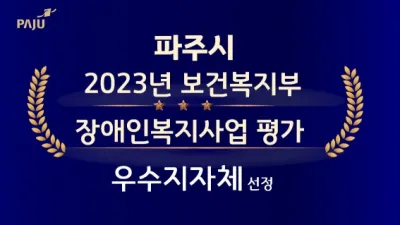 파주시, 올해 보건복지부 장애인복지사업 평가 ‘우수지자체’선정 - 장애·비장애인이 함께하는 도시 실현         파주시는 보건복지부 주관 2023년 지자체 장애인복지사업 평가에서 ‘우수...