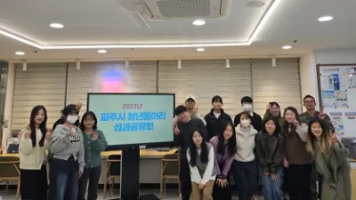 파주시 청년동아리 지원사업 활동공유회 개최 - 우수활동 동아리 3팀 내년도 사업 우선권 부여 파주시는 13일 2023년 파주시 청년동아리 지원사업의 활동공유회를 개최했다. 이번 활동공유회에서는 2023년 청...