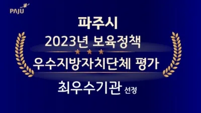 파주시, 올해 전국 보육정책 평가 ‘최우수기관’ 선정 - 2021년 2022년에 이어 3년 연속 우수 지자체 영예         파주시는 전국 광역·기초 지방자치단체를 대상으로 보건복지부에서 실시한 ...