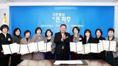 파주시, 국공립어린이집 9곳과 위탁계약 체결…공보육 확충 파주시는 5일, 관내 9곳의 국공립어린이집과 위탁계약을 체결하고 증서를 전달했다. 이날 전달식에는 김경일 파주시장과 김혜순 어린이집연합회...