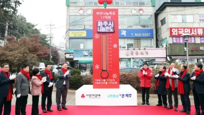 기부로 파주를 따뜻하게’…파주시, 사랑의 온도탑 제막 - 목표액 11억 원, 100℃ 향한 62일간의 대장정 시작 파주시는 12월 6일 금촌역광장에서 사랑의 온도탑 100℃를 향한 힘찬 외침과 함께 &lsqu...